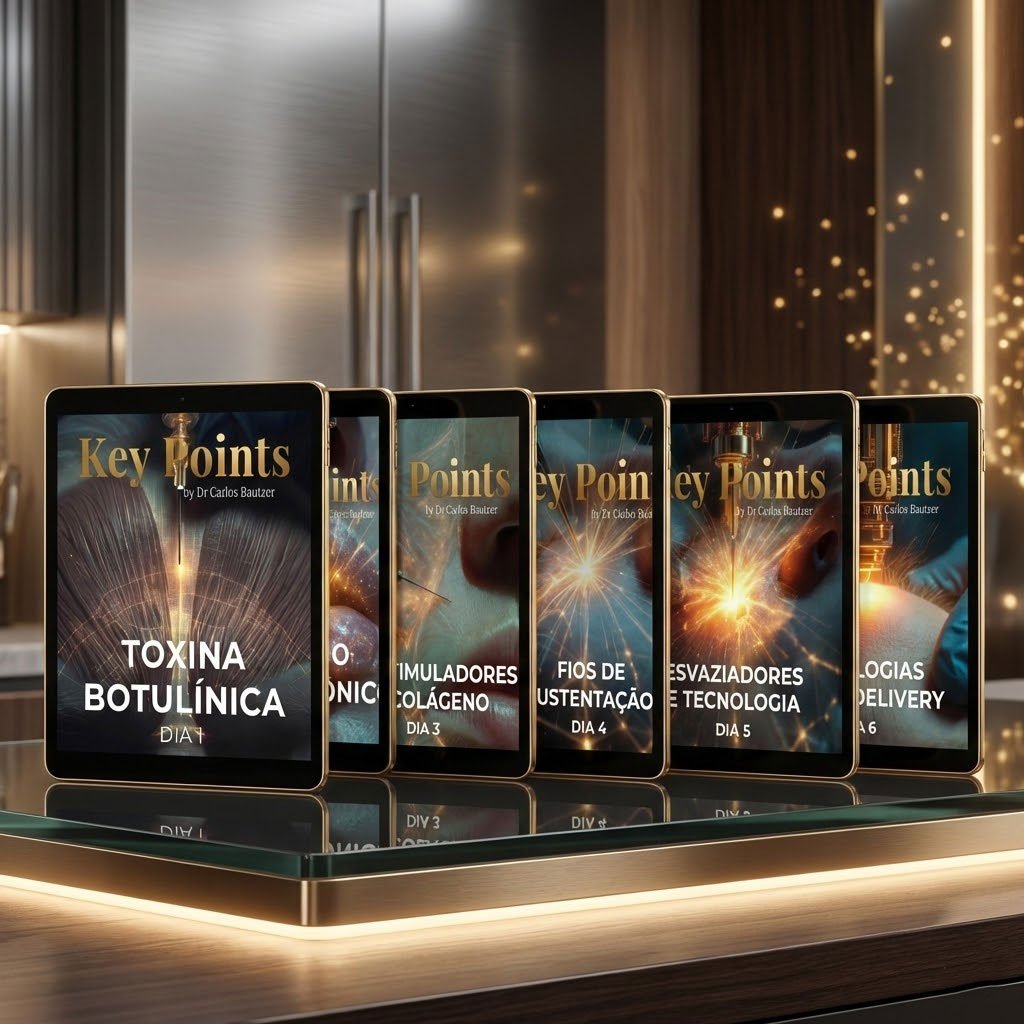 Imersão completa de 6 Steps com Dr. Carlos Bautzer. 100% hands-on. Inclui todos os módulos: Toxina, Ácido Hialurônico, Bioestimuladores, Fios, Enzimas e Drug Delivery.